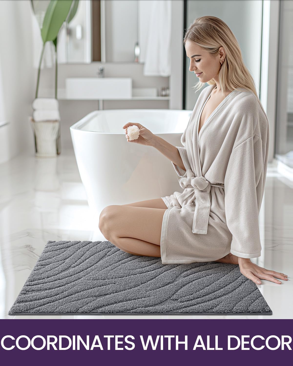 DEXI Bathroom Rugs 24×36, Non Slip Washable Bath Mat for Shower Floor, Luxury Soft Absorbent Bathmat with Rubber Backing, Quick Dry Microfiber Carpet, Dark Grey