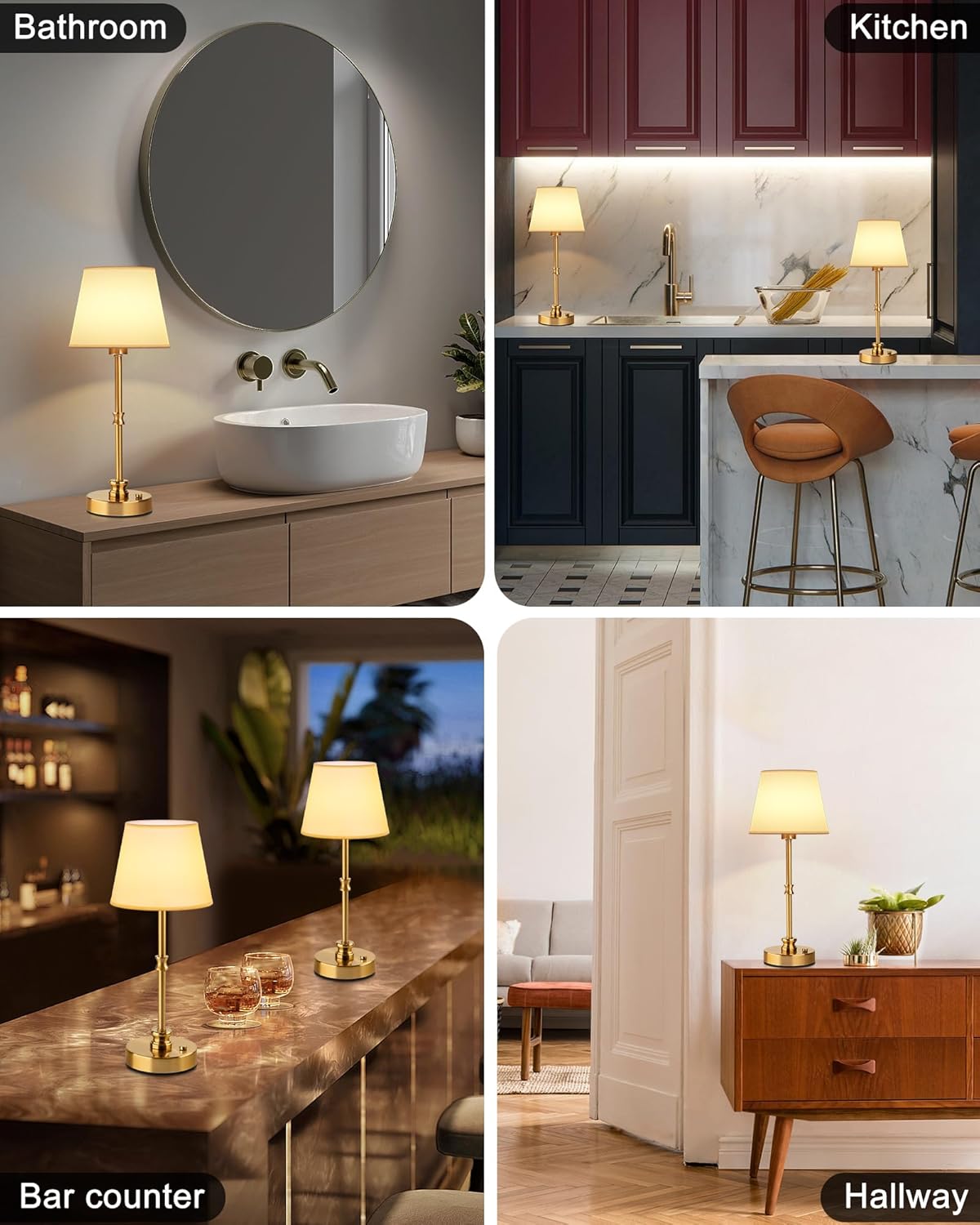 The small gold base paired with a stylish fabric shade adds a touch of elegance to your decor, making this lamp not only functional but also a chic accent piece. Whether you’re looking to brighten up your workspace, create a relaxing atmosphere in your bedroom, or add a touch of sophistication to your bathroom, the EppieBasic Cordless Table Lamp is the perfect lighting solution for you.